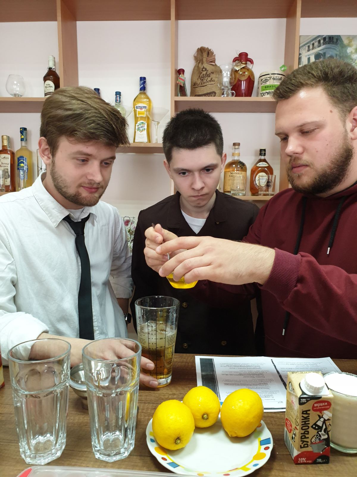 На заняттях впродовж семестру студенти навчилися змішувати коктейлі в правильних пропорціях, створювати необхідну консистенцію, проводити віртуозну подачу напоїв, а також дегустувати отримані зразки.