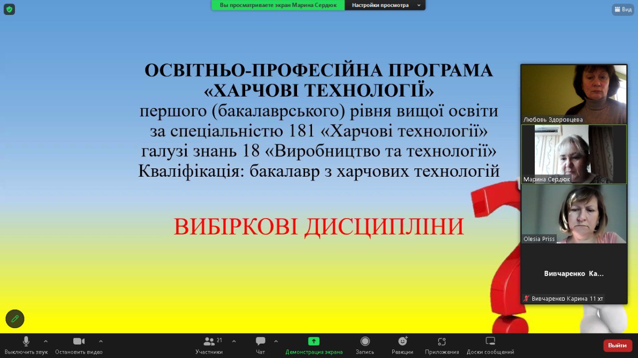 Презентація вибіркових дисциплін освітньо-професійної програми «181 Харчові технології»