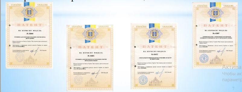 - науково обґрунтовано та розроблено композиції біологічно активних речовин для післязбиральної обробки плодових овочів;