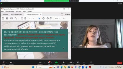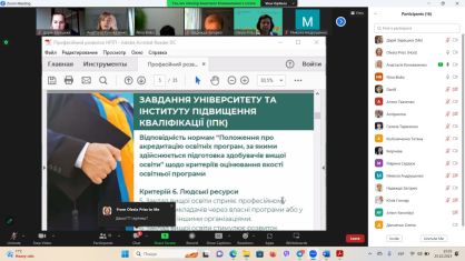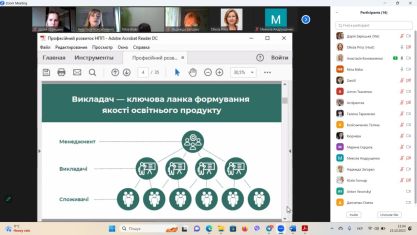 Завдяки інституту підвищення кваліфікації, а саме Анастасії Коноваленко на кафедрі ХТГРС було проведено обговорення існуючих підходів до професійного розвитку викладачів та діючого Положення про професійний розвиток НПП, особливості організації підвищення кваліфікації, стажування та інших видів підвищення кваліфікації. Було ацентовано увагу на тому, що викладач є ключовою ланкою забезпечення якості освіти, а професійний розвиток є безперервним процесом удосконалення власних професійних компетенцій.
