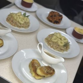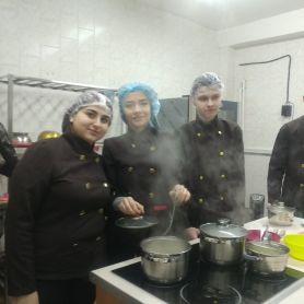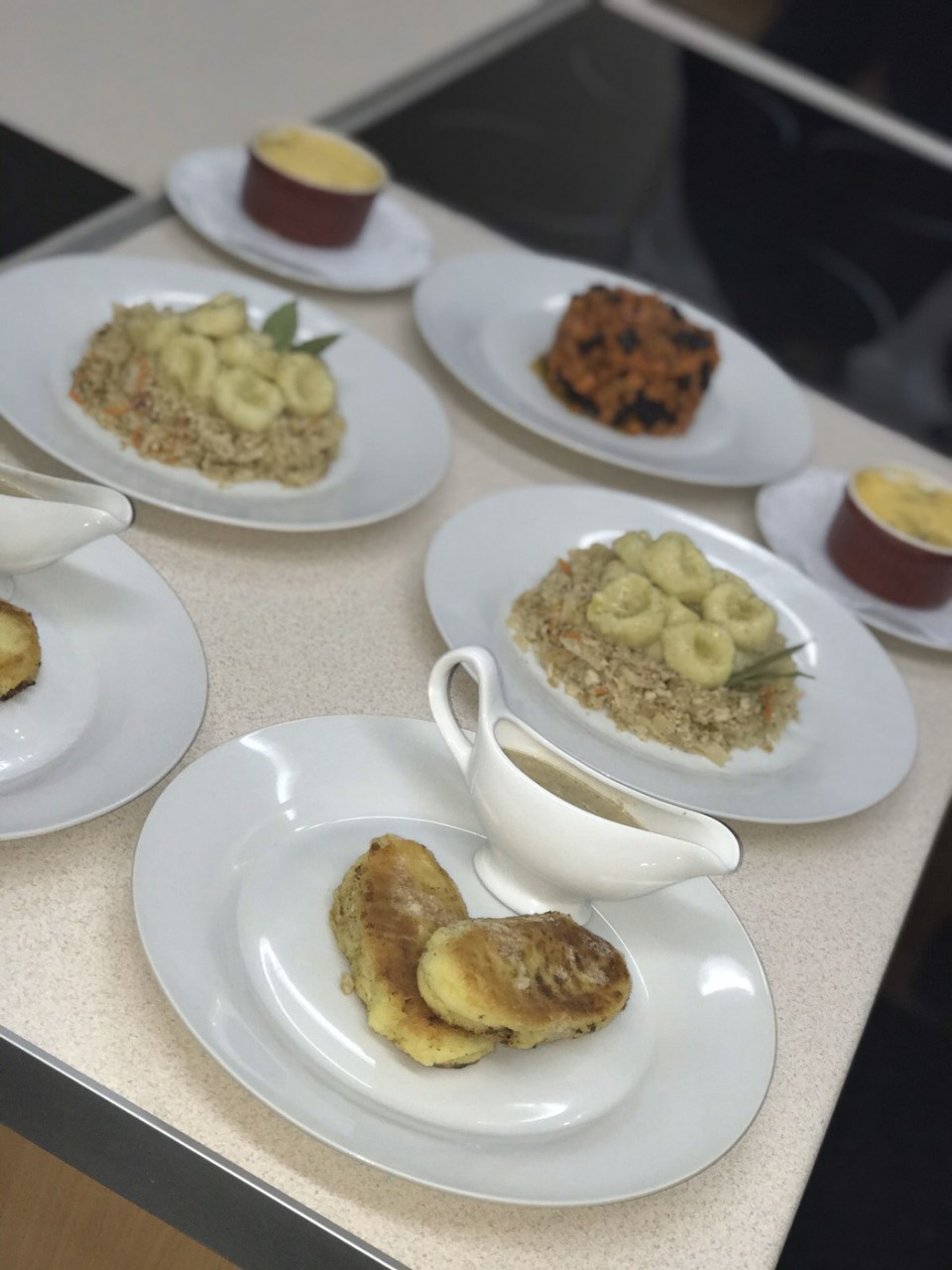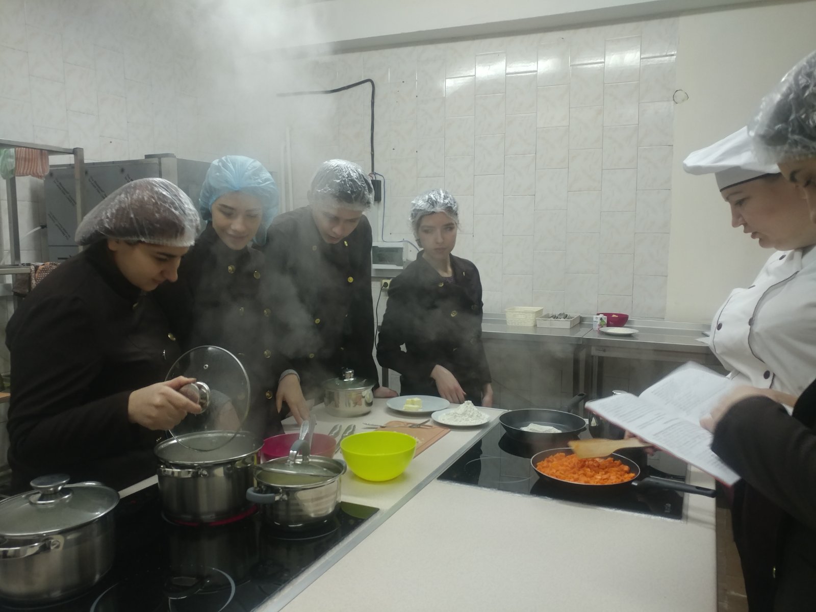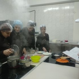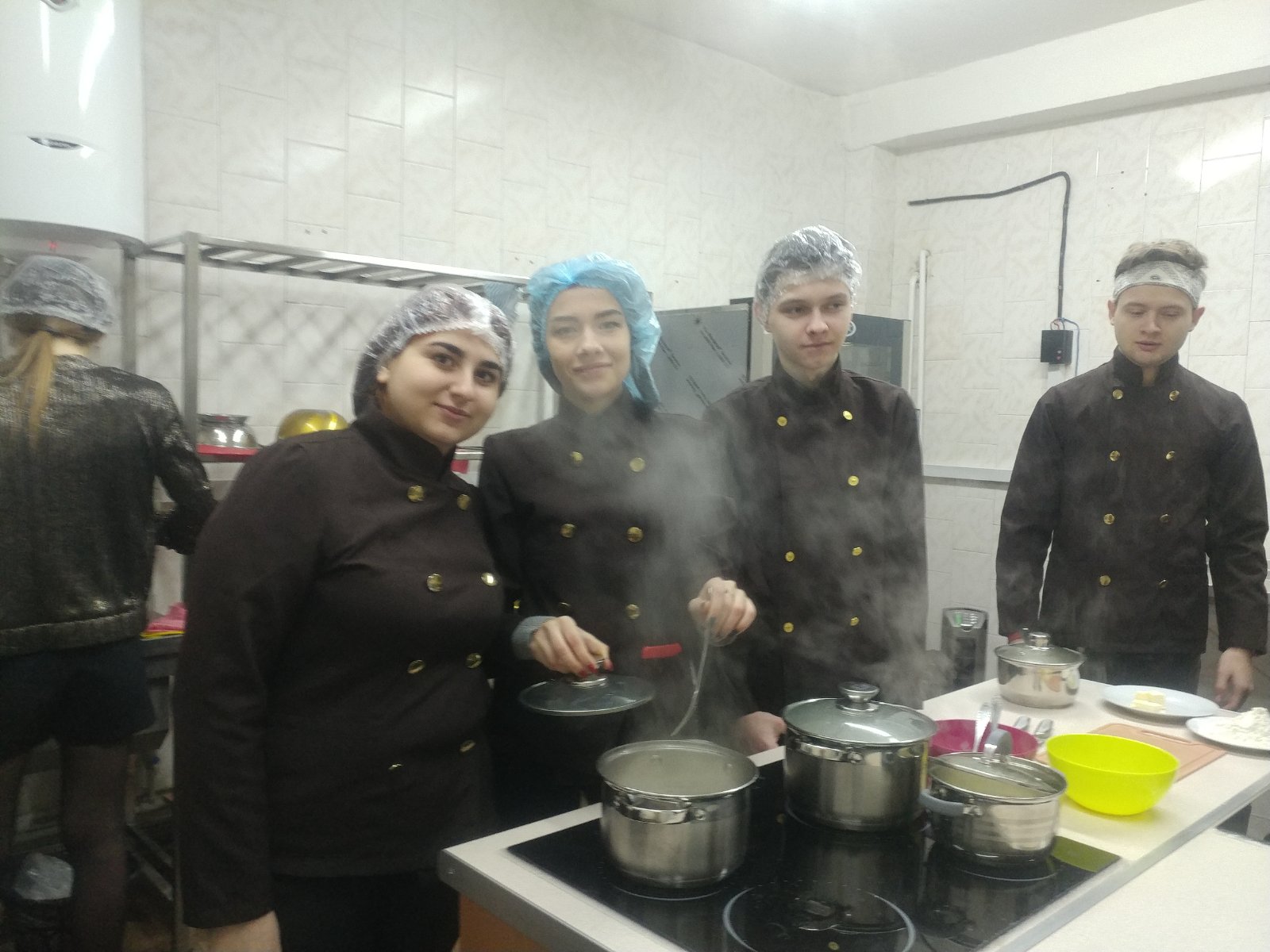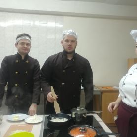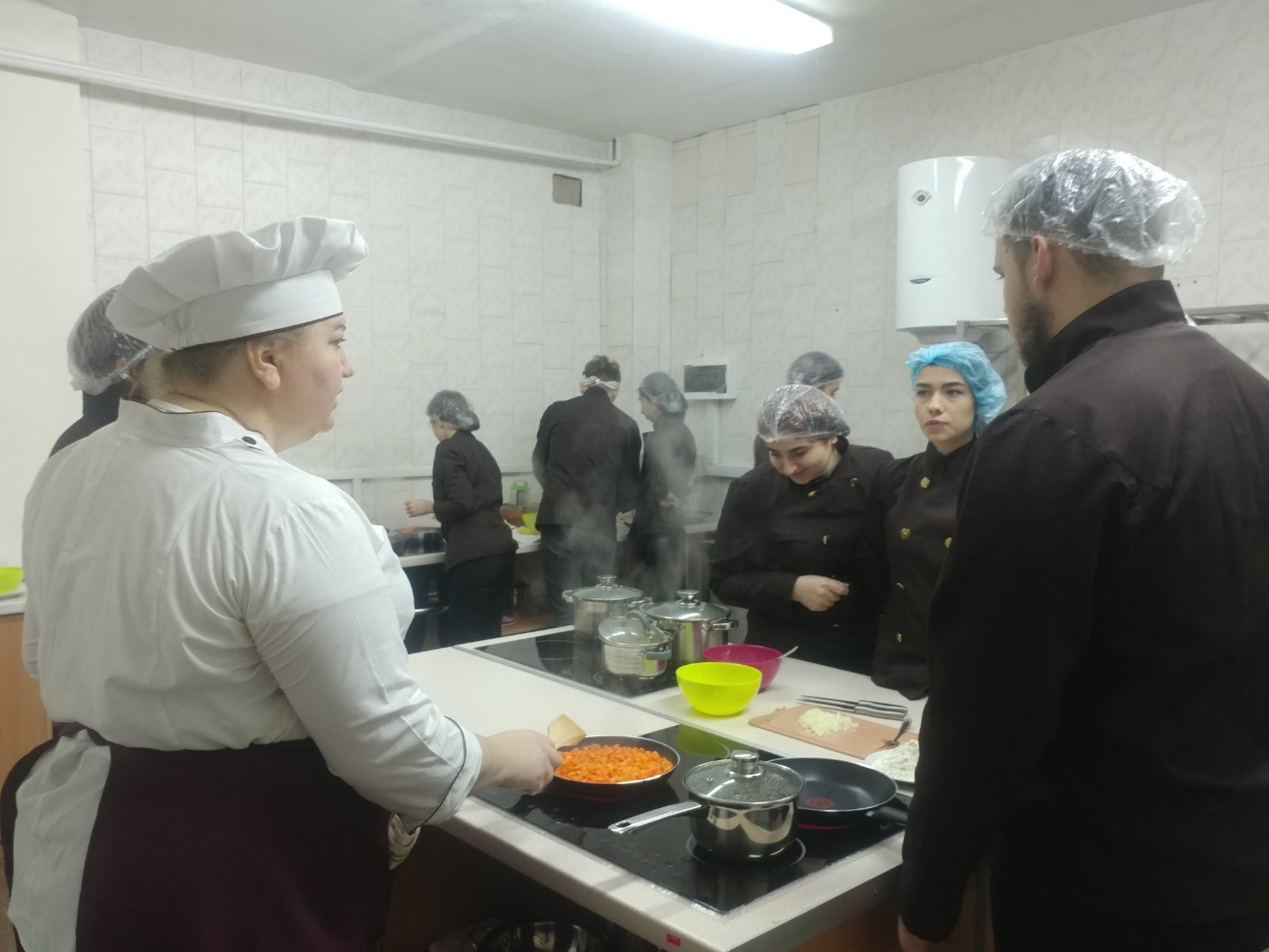 Зараз другокурсники спеціальності «Готельно-ресторанна справа» вивчають розмаїття страв з овочів і грибів. На цьому тижні на лабораторних заняттях з дисципліни «Технологія продукції ресторанного господарства» студенти знайомились з технологіями приготування таких страв, як: жульєн, кнедлі з капустою, картопляники з м’ясом та грибним соусом, морква тушкована з чорносливом. В кінці занять всі з задоволенням продегустували результати своїх кулінарних творінь.