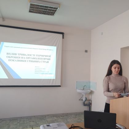 Кращою доповіддю за підсумками конференції була визначена наступна: “Обґрунтування тривалості виготовлення грибної начинки для борошняних виробів”, доповідач Вакасова К. А., 41 ХТ. Керівник: к. с.-г. н., доц. Бандура І. І. За результатами проведеної конференції планується видання збірника тез доповідей студентів і магістрантів.