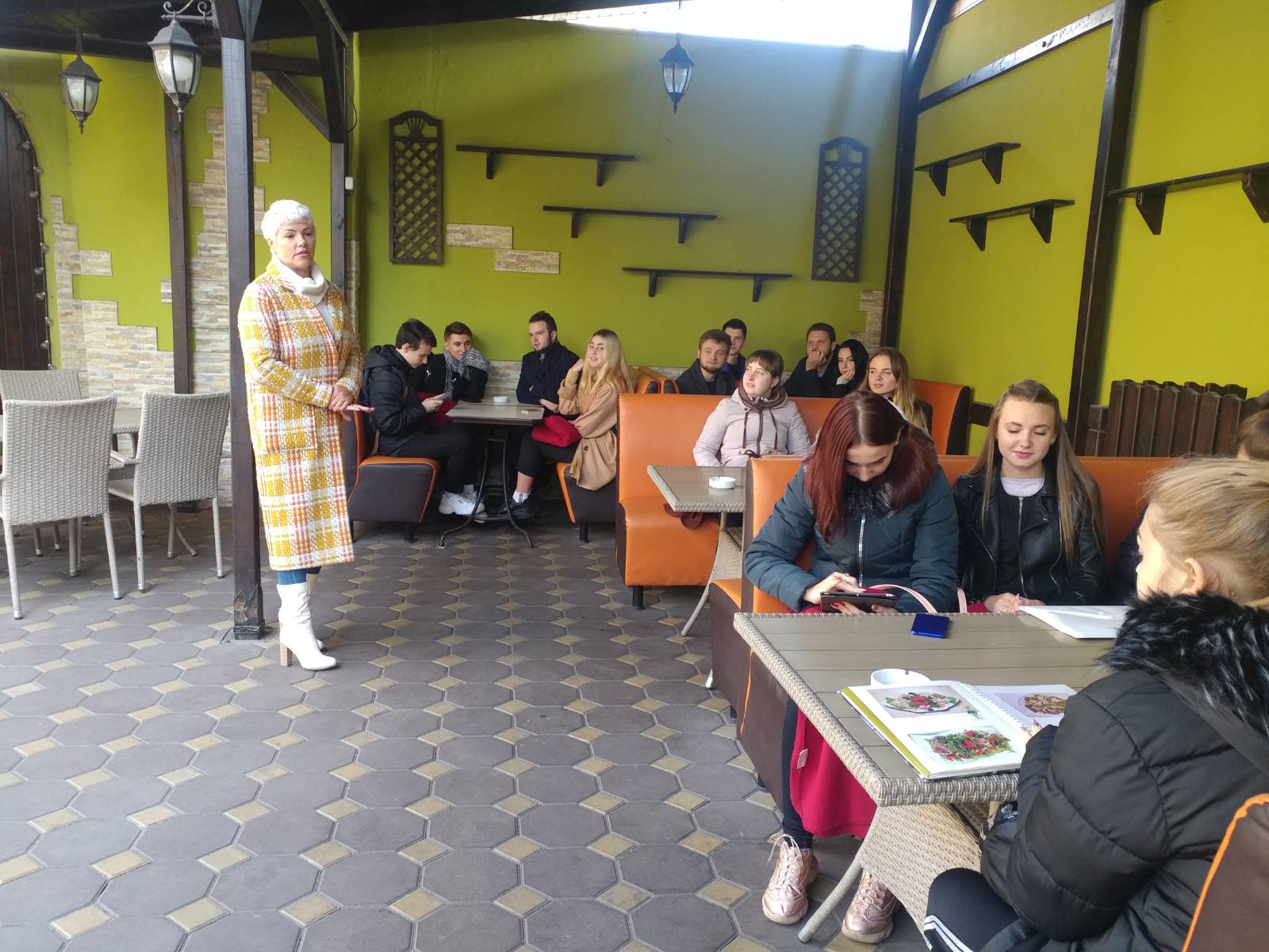 На минулому занятті студенти 11 ГРС групи в рамках навчального візиту відвідали ресторан «Пан і Пані». Власниця ресторану Олена Василівна Рудченко щиро поділилася з молоддю секретом 20-річного успіху свого проекту, розповіла, які особисті якості та знання необхідні рестораторам, дала відповіді на всі хвилюючі питання.