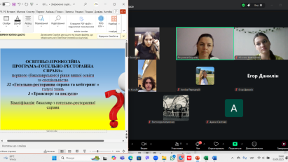 Традиційно на початку навчального року відбувається знайомство першого курсу з освітньо-професійною програмою. З цією метою, відбулася онлайн-зустріч гаранта ОПП та здобувачів першого (бакалаврського) рівня вищої освіти спеціальністі J2 «Готельно-ресторанна справа та кейтеринг» галузь знань J «Транспорт та послуги»