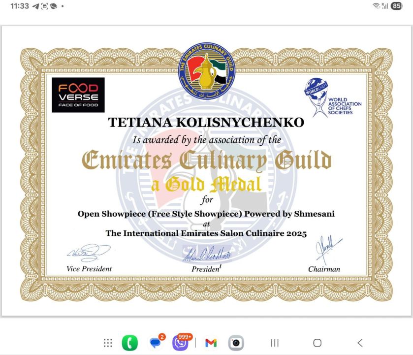 “Золото” науковиці ТДАТУ на міжнародних практичних і показових кулінарних змаганнях Emirates Salon Culinaire