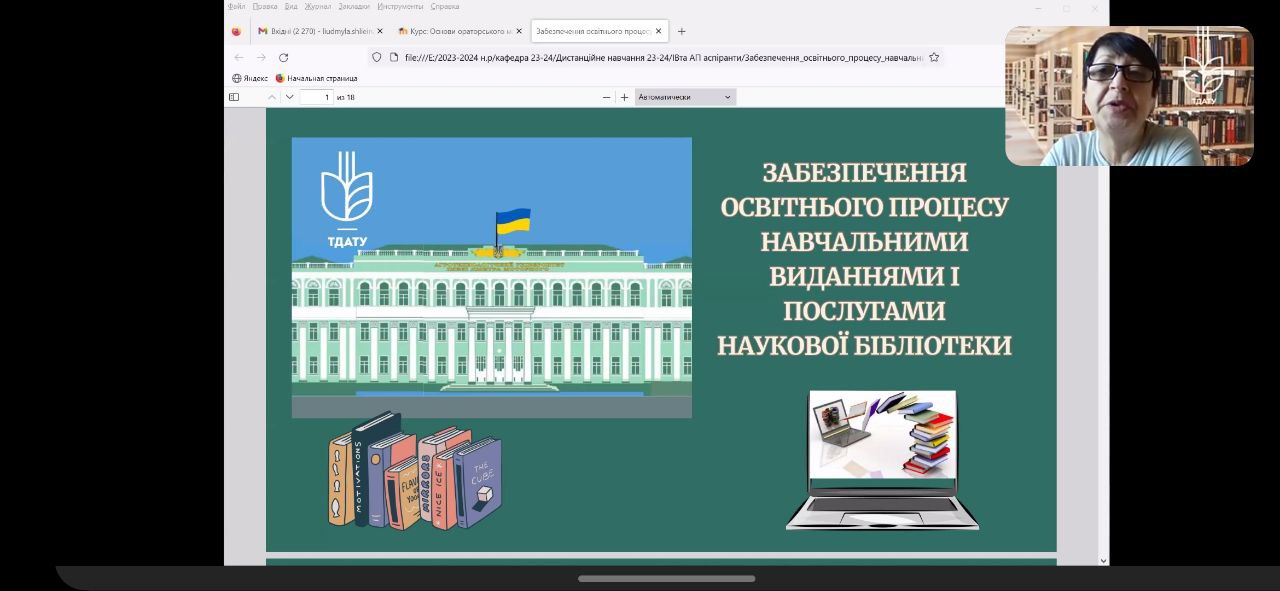 Зустріч студентів перших курсів з директором наукової бібліотеки ТДАТУ за темою: “Забезпечення освітнього процесу навчальними виданнями і послугами наукової бібліотеки”