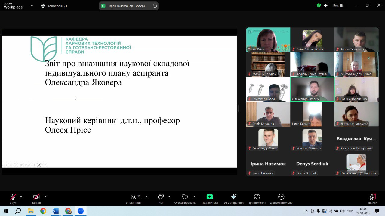 Звіт аспірантів кафедри “Харчових технологій та готельно-ресторанної справи”