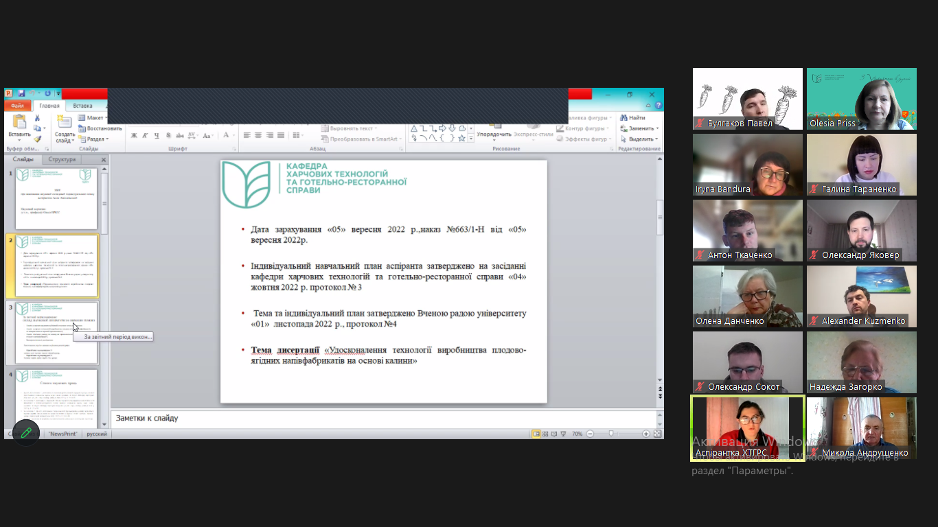 Звітують аспіранти: виконання наукової складової освітньої програми аспірантами спеціальності 181 “Харчові Технології”