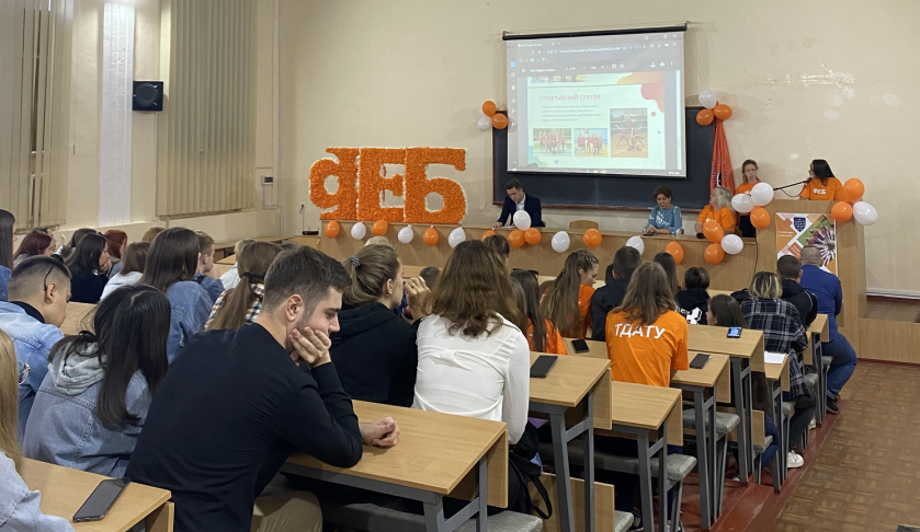 Заступник декана факультету економіки та бізнесу з організаційно-виховної роботи Олена Васильченко ознайомила першокурсників з цілями та планом заходів і запросила до мікрофону представників дозвіллєвих осередків Таврійського державного агротехнологічного університету імені Дмитра Моторного: наукової бібліотеки ТДАТУ, спортивного клубу «Таврія-Університет» та ЦКІДу. Кожен з них розповів про можливості саморозвитку, вступ до спортивних секцій, вдосконалення творчих здібностей. Також до привітання першокурсників долучилась представник університетського профкому – Мазурова Ірина.