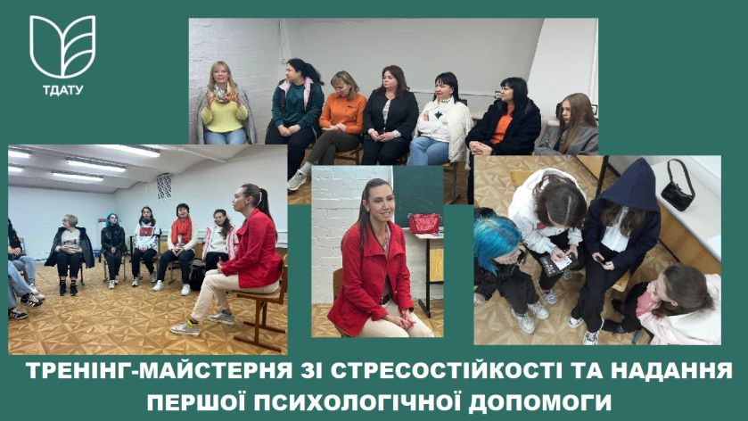 Інститутом підвищення кваліфікації Таврійського державного агротехнологічного університету імені Дмитра Моторного було організовано проведення для представниць університету тренінгу-майстерні зі стресостійкості та надання першої психологічної допомоги.