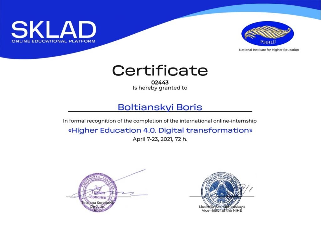 Міжнародне онлайн-стажування професорсько-викладацького складу за програмою: «Університет 4.0. Цифрова трансформація университетів»