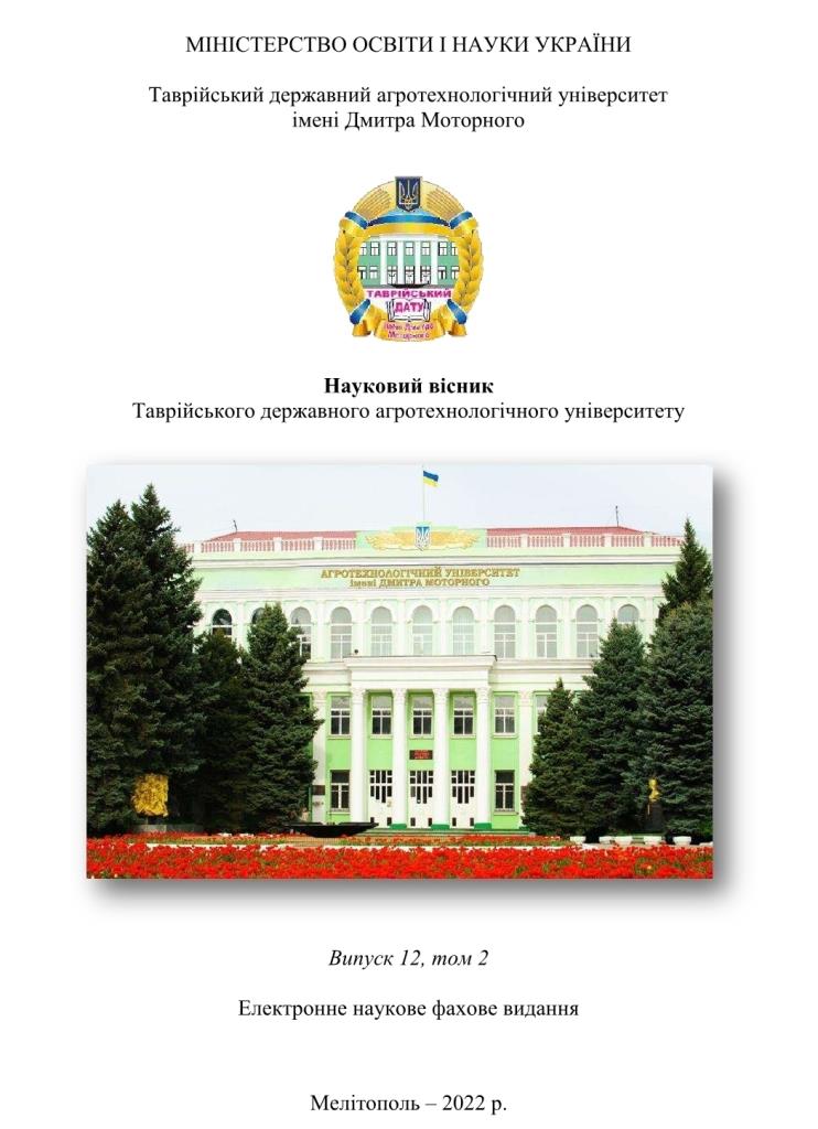 Науковий вісник ТДАТУ 2022 Випуск 12, Том 2