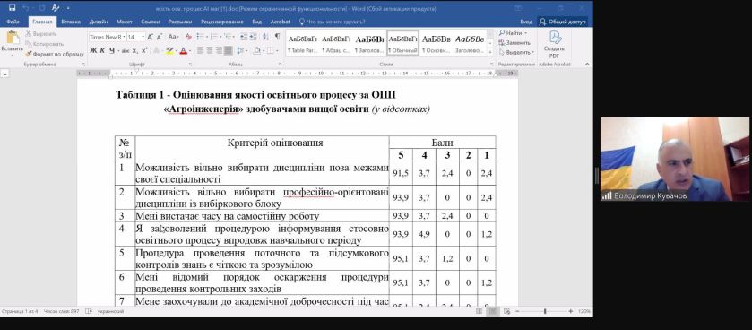 За підсумками обговорення були ухвалені відповідні висновки. Аналіз анкетування показав, що освітній процес за ОПП «Агроінженерія» отримав високу оцінку: серед 82 респондентів (що становить 52% від загальної кількості магістрів 2-го курсу) абсолютна більшість оцінила якість навчання на рівні «відмінно» або «добре».