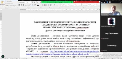 У Таврійському державному агротехнологічному університеті імені Дмитра Моторного проведено моніторинг стану академічної доброчесності серед здобувачів другого (магістерського) рівня за освітньо-професійною програмою «Агроінженерія».