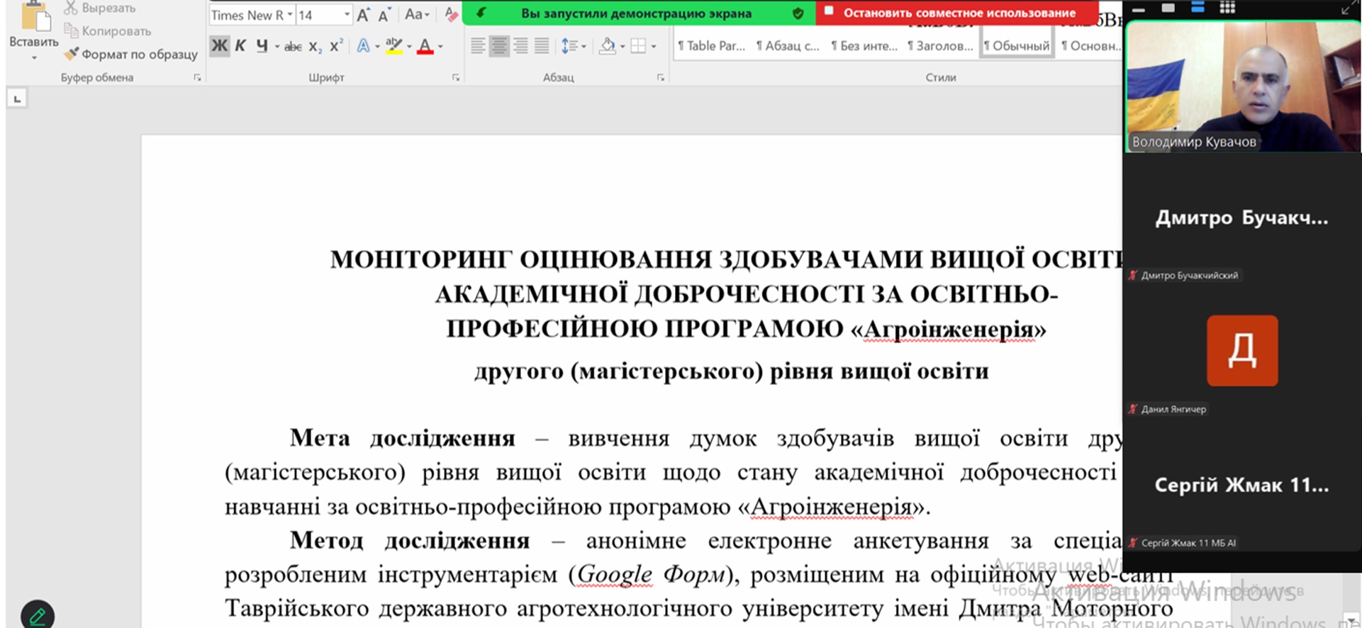 Обговорення результатів моніторингу оцінювання академічної доброчесності здобувачами освітньої програми «Агроінженерія» (магістерський рівень)