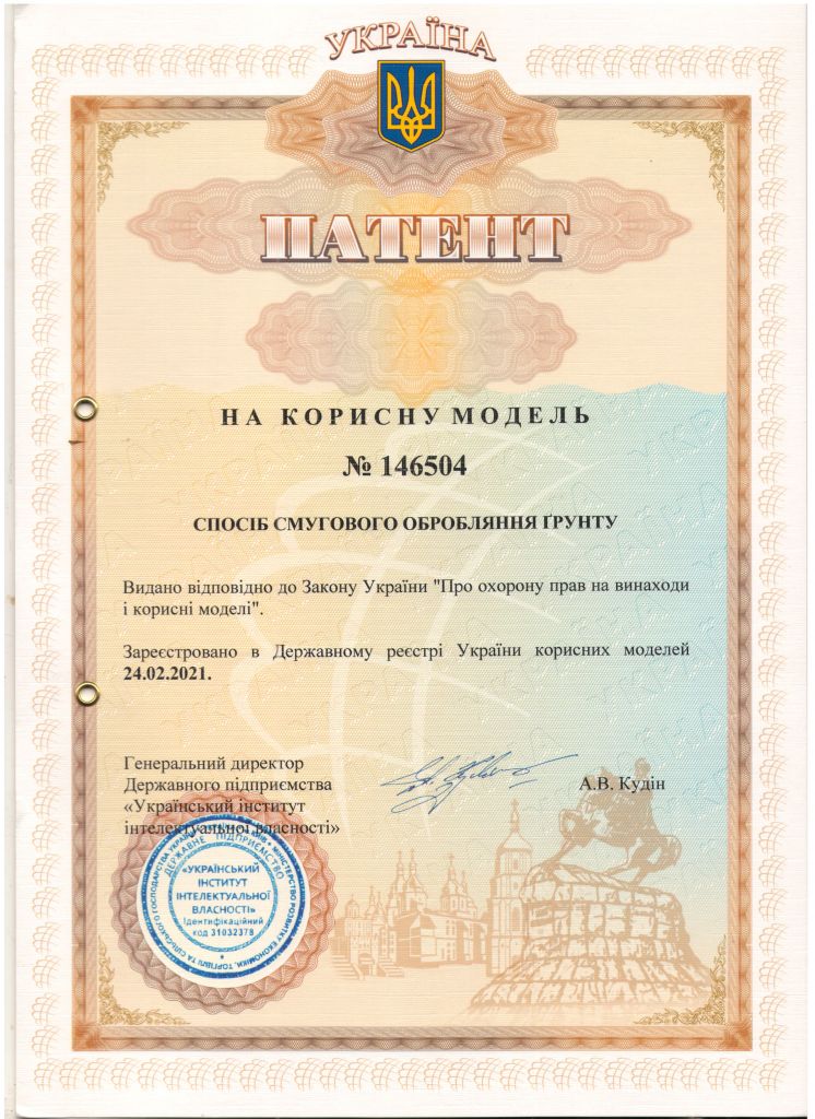 Отримано сертифікат патенту на корисну модель «Спосіб смугового обробляння ґрунту»