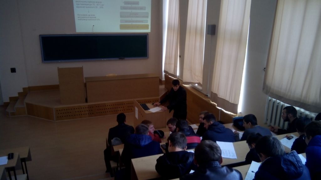 19 жовтня 2015 року магістри механіко-технологічного факультету Полторацький Андрій та Бардус Ілля в рамках виконання педагогічної програми з предмету “Методика викладання дисципліни” провели лекцію. Виконанню завдання сприяв в.о. завідувача кафедри ТСТТ Болтянський Б.В. Магістранти проводили лекцію студентам механіко-технологічного факультету 21-24 СПМ груп в аудиторії 5.103. Слухачам дуже сподобалось викладення інформації по темі “Машини для теплової обробки кормів та приготування кормових сумішок”, предмету «Машини, обладнання та їх використання в тваринництві» своїми старшими товаришами.