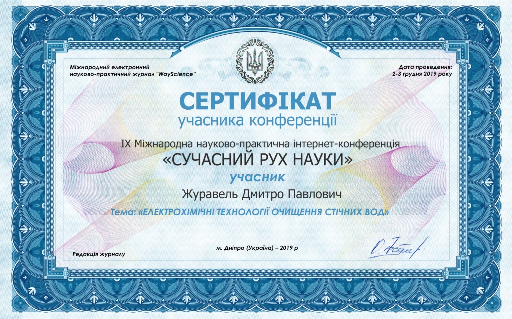 2-3 грудня 2019 р. проводилась IХ міжнародна науково-практична інтернет-конференція «Сучасний рух науки» основним гаслом якої є прокласти шлях розвитку сучасної науки від ідеї до результату Міжнародного електронного науково-практичного журналу «WayScience».