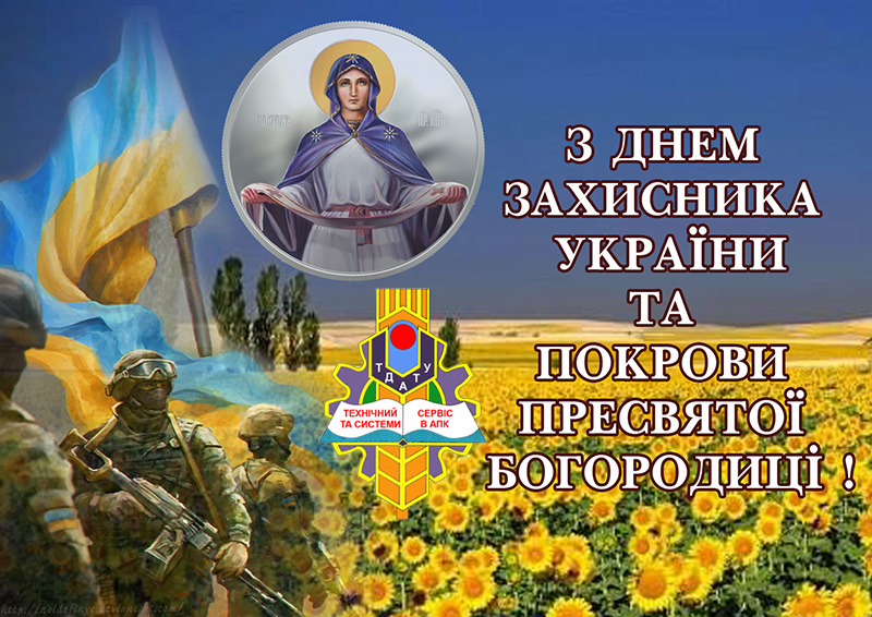 Колектив кафедри технічного сервісу та систем в АПК вітає Вас з Днем захисника України та святом Покрови Пресвятої Богородиці!