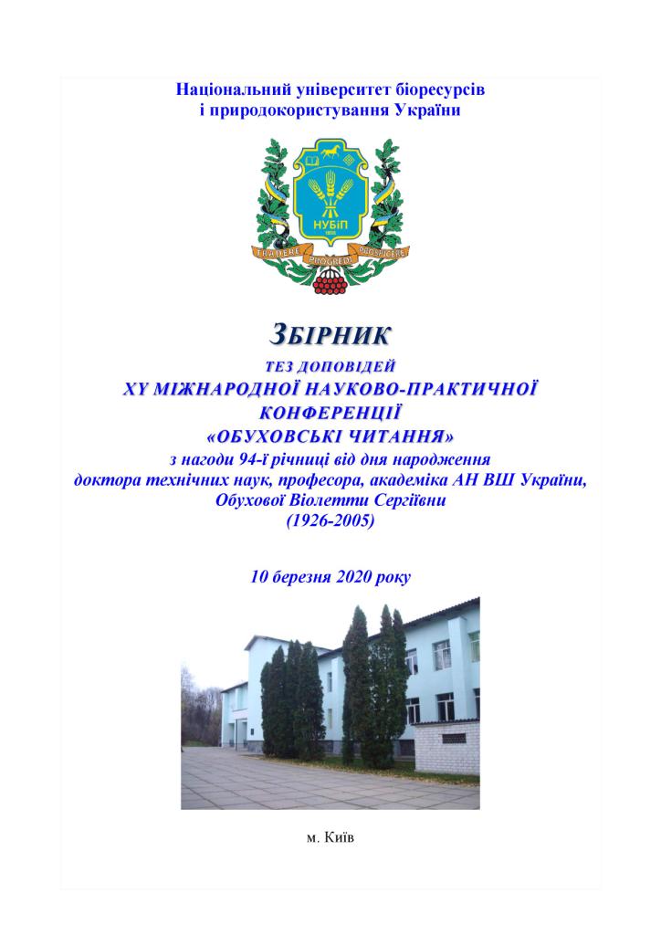 Співробітники кафедри к.т.н., доцент Болтянська Н.І. та технік І категорії Комар А.С. прийняли участь в XV міжнародній науково-практичній конференції «ОБУХОВСЬКІ ЧИТАННЯ» (програма конференції), яка проводилась в м. Київ на базі Національного університету біоресурсів і природокористування України з нагоди 94-ї річниці від дня народження доктора технічних наук, професора, академіка АН ВШ України, Обухової Віолетти Сергіївни. На конференції були представлені доповіді науково-педагогічних працівників, наукових співробітників, аспірантів і докторантів. За результатами роботи конференції було випущено збірник матеріалів конференції, куди увійшли доповіді і співробітників кафедри ТСС АПК.