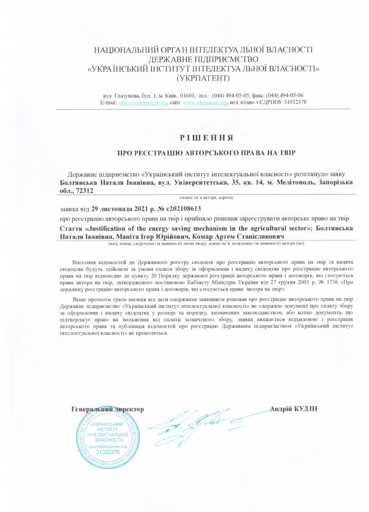 Співробітники кафедри отримали свідоцтво про реєстрацію авторського права на науковий твір