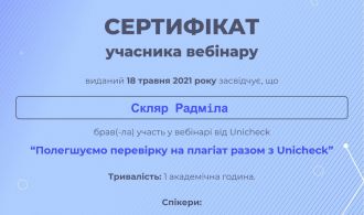 18 травня компанія Unicheck проводила вебінар, «Полегшуємо перевірку на плагіат разом з Unicheck» в якому взяли доцент Скляр Р.В. та доцент Болтянська Н.І. Спікер заходу, експерт з академічної доброчесності та комерційний директор Unicheck Андрій Сідляренко дав загальну характеристику ролі програмного забезпечення з виявлення плагіату, як одного з порушень академічної доброчесності у закладах вищої освіти. Багато уваги було приділено […]