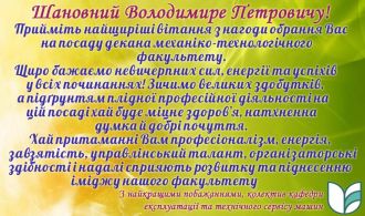 Вітаємо доктора технічних наук, професора кафедри експлуатації та технічного сервісу машин Володимира Петровича Кувачова з обранням на посаду декана механіко-технологічного факультету!