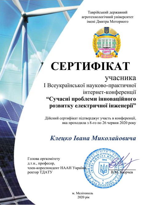 Участь в І Всеукраїнській науково-практичній інтернет-конференції «Сучасні проблеми інноваційного розвитку електричної інженерії»