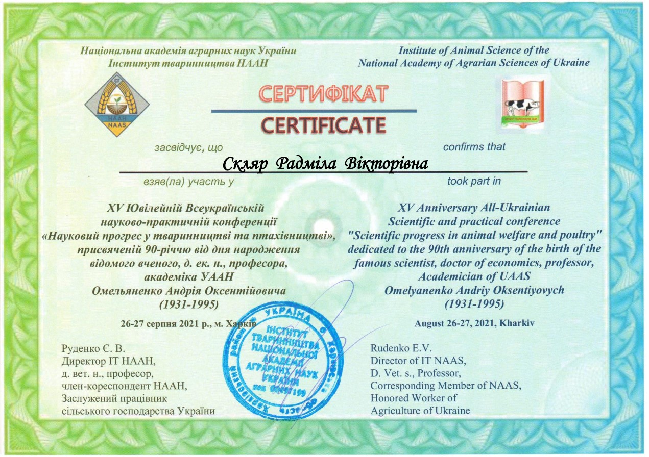 Участь в конференції «Науковий прогрес у тваринництві і птахівництві»