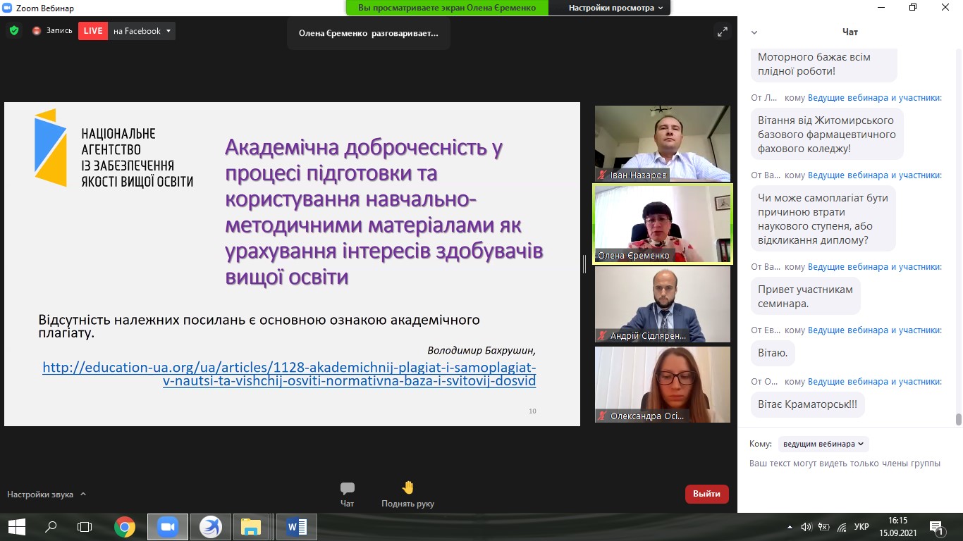 Участь в вебінарі від Unicheck та НАЗЯВО «Академічна доброчесність і підготовка навчально-методичних матеріалів»