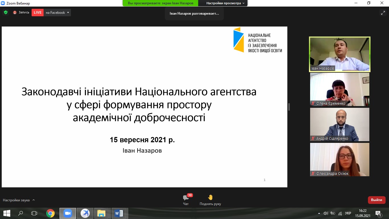 Участь в вебінарі від Unicheck та НАЗЯВО «Академічна доброчесність і підготовка навчально-методичних матеріалів»