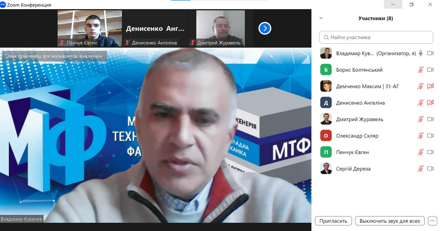 8 лютого 2023 року о 14:45 год (на 4 парі) на кафедрі експлуатації та технічного сервісу машин в застосунку Zoom д.т.н., доц. Володимиром Петровичем Кувачовим було проведено відкриту онлайн-лекцію на тему «Машинні агрегати, їх класифікація та умови використання» з дисципліни «Машиновикористання в землеробстві» для здобувачів ступеня вищої освіти «Бакалавр» 3 та 2С курсів зі спеціальності 201 «Агрономія» факультету агротехнологій та екології. На онлайн заході були присутні провідні фахівці кафедри. В результаті обговорення лекції на засіданні кафедри експлуатації та технічного сервісу машин колегами було відмічено високу ступінь лектора володіння матеріалом та дана позитивна оцінка проведенню відкритого заняття (протокол перевірки).