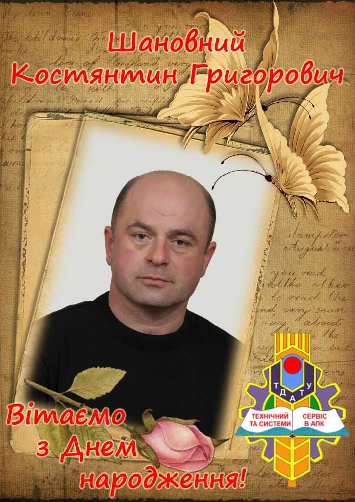 Вітаємо Костянтина ПЕТРЕНКО старшого викладача кафедри технічного сервісу та систем в АПК Таврійського державного агротехнологічного університету імені Дмитра Моторного з Днем народження!