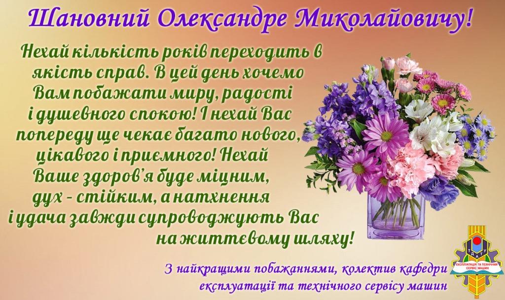 Вітаємо Олександра Миколайовича Шокарева керівника Навчально-наукового інституту загальноуніверситетської підготовки, кандидата технічних наук, доцента кафедри експлуатації та технічного сервісу машин з Днем народження!