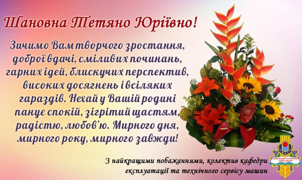 Вітаємо Тетяну Юріївну Реву провідного інженера кафедри експлуатації та технічного сервісу машин з Днем народження!