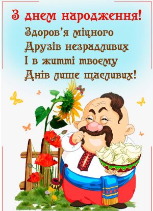 Щиро бажаємо бути в усьому переможцем, ніколи не сумувати, любити життя, творити добро, бадьоро і впевнено йти до своїх цілей і результатів, завжди залишатися веселим і душевним, мати відмінний настрій, з натхненням і гумором дивитися на світ. Нехай завжди буде благополуччя в житті, в роботі і в сім’ї, а за сильними плечима завжди будуть любов і стабільність. Досягнень, радості і добра, тепла і усмішок, безстрашності, впевненості, незрівнянних вражень, сили і віри в себе і завтрашній день! Бажаємо в житті міцних обнімашок і солодких цілувашок, проблем дрібних, як комашки і міцних нервів, як фісташки, ніжного поля душі в ромашках