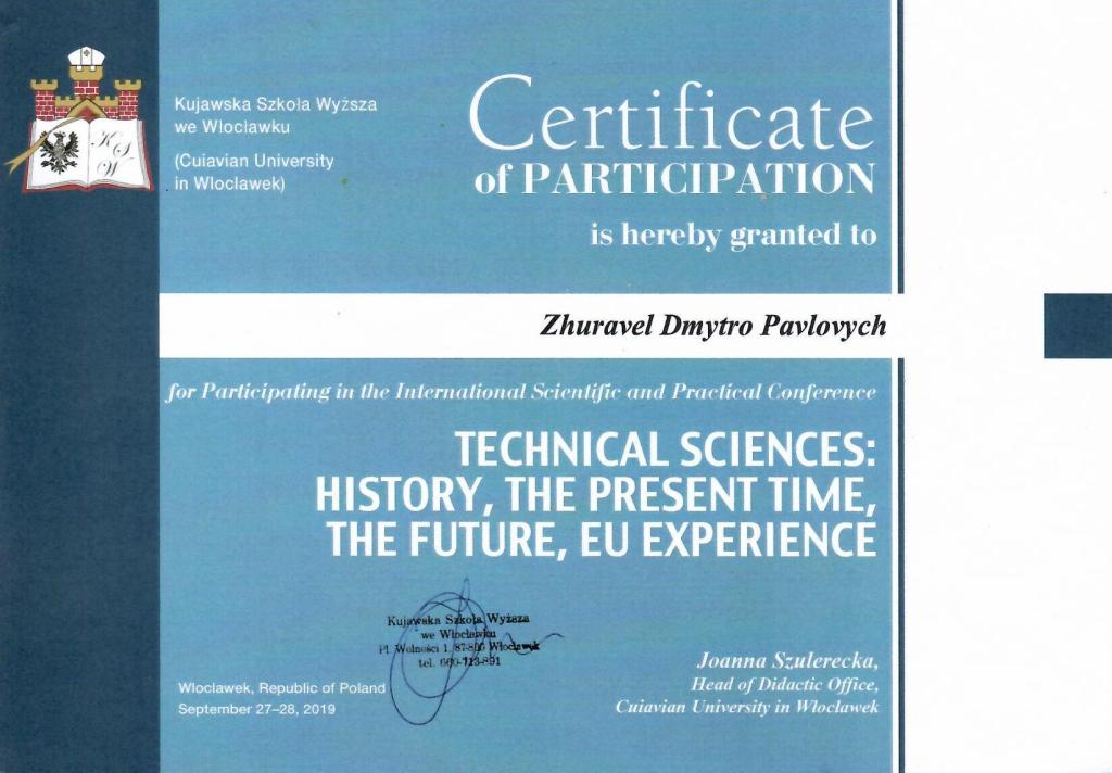 Викладачі кафедри прийняли участь в Міжнародній науково-практичній конференції в місті Влоцлавек