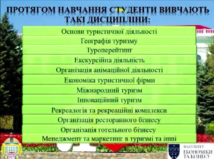 Туризм приваблює багатьох студентів як цікавий напрямок для вивчення – тут вже точно не буде нудно під час лекцій. Однак, щоб стати кваліфікованим фахівцем, необхідно дуже старатися – тільки вивчення кількох іноземних мов чого вартий! Але можливість практики в турагентстві і зарубіжної практики мінімізує можливі складнощі. Крім того, перед випускниками відкриваються широкі перспективи у працевлаштуванні.