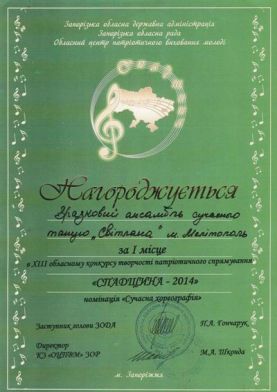 Олеся Пономаренко, Народний хореографічний ансамбль «Юність», Зразковий ансамбль сучасного танцю «Світлана» вибороли перші місця у фіналі обласного конкурсу художньої творчості «Спадщина».