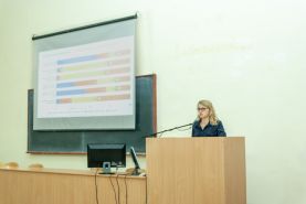 Він представив доповідачку семінару завідувачку відділу моніторингу якості освітньої діяльності, доцента Радмілу Скляр. На початку своєї доповіді, пані Радміла, акцентувала увагу на меті даного зібрання – це розглядання основних вимог існуючого законодавства та нормативних документів університету та на тому, що за результатами пройденого в минулому році опитування необхідно буде виокремити проблемні моменти та на базі отриманих даних створити модель щодо покращення забезпечення академічної доброчесності та якості вищої освіти у ТДАТУ.