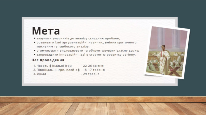 Мета дебатів – залучити учасників до аналізу складних проблем, а також навчити висловлювати та обґрунтовувати власну думку.