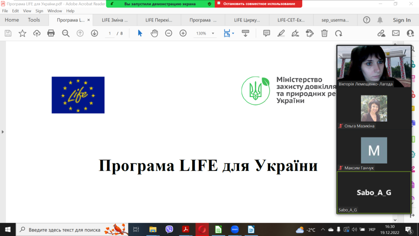 Протягом вебінару детально було розглянуто основні напрями програми LIFE: охорона природи та біорізноманіття, циркулярна економіка та якість життя, запобігання та адаптація до зміни клімату, перехід до альтернативних джерел енергії.