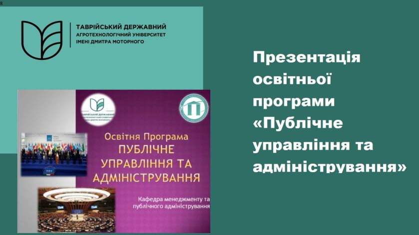 На кафедрі менеджменту та публічного адміністрування ТДАТУ відбулась презентація освітньої програми «Публічне управління та адміністрування» для здобувачів першого (бакалаврського) рівня вищої освіти за спеціальністю 281 «Публічне управління та адміністрування».