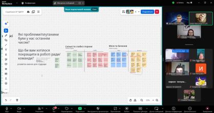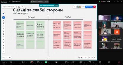 – Сильні та слабкі сторони. Спільно сформульовано перелік викликів, які постали перед студентським активом в умовах релокації, дистанційної форми навчання та між рівнями студентських рад;