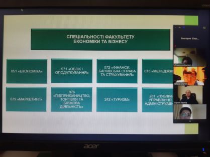 Щодо другого питання, декан факультету економіки та бізнесу Сергій Карман надав інформацію про стан забезпечення якості підготовки фахівців. Сергій Вікторович перерахував 8 спеціальностей факультету та охарактеризував структуру контингенту студентів. Про якість знань студентів за результатами зимової сесії можна було зробити висновок з даних продемонстрованих у презентації.