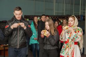 Весело і ситно провели другий день Масниці студенти ТДАТУ на студентському ярмарку університету. 5 березня на великій перерві відбувалися танці, готувалися великі столи зі смаколиками , панували сміх, розваги, всіх пригощали свіжими млинцями прямо з плити . Все це відбувалося у холі ЦКіД!