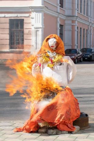 Святковий захід завершився урочистим спаленням опудала Масляної – символу холодної і важкої зими. Тому, прощаючись з ним, усі раділи, що всі печалі, прикрості й образи минулої пори року перетворюються на попіл, а весна принесе тільки здоров’я, щастя, радість, любов та благополуччя!