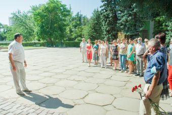 Як данина пам’яті про великого хлібороба, на площі Слави ТДАТУ, де встановлено погруддя Дмитра Моторного, відбувся пам’ятний мітинг і покладання квітів. Співробітники ТДАТУ на чолі з ректором Володимиром Кюрчевим зібралися щоб пригадати, якою чудовою людиною він був.