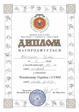Це почесне спортивне звання він здобув на чемпіонаті України з сумо серед дорослих і молоді віком до 23 та до 21 років, який проходив з 19 по 24 лютого у місті Луцьк Волинської області. Подія зібрала понад 600 спортсменів із 13 регіонів України.