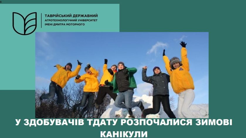 Здобувачі вищої освіти здали заліково-екзаменаційну сесію та пішли на канікули. Відпочинок у студентів триватиме майже місяць. Наступний семестр розпочнеться 29 січня. Розклад навчальних занять буде опубліковано на сайті ТДАТУ напередодні початку семестру.